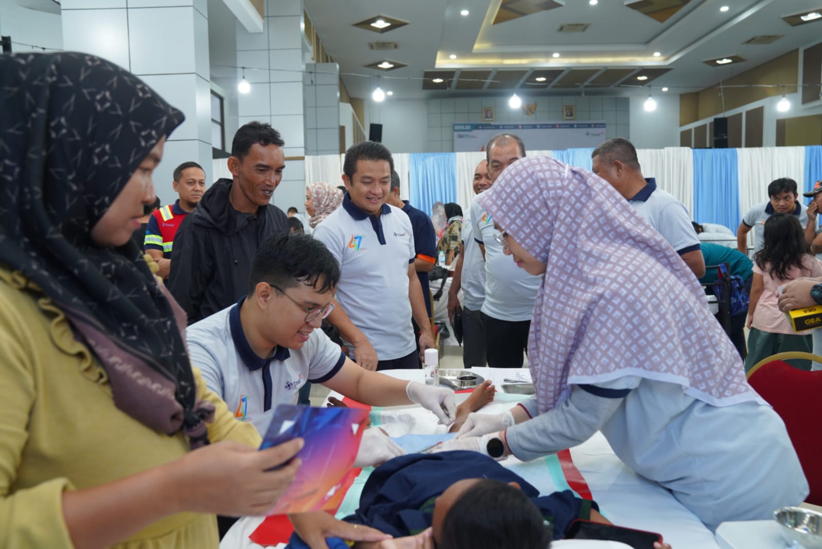 Ratusan warga dari berbagai daerah antusias mengikuti khitanan massal dan donor darah. Sejak pagi mereka datang untuk registrasi dan menunggu giliran.