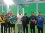 Wabup Rohul Dan Kapolres Takluk Pada Kejari dan Ketua PN, Di Laga Perdana Eksebisi Jelang Final Open Tournament Bulutangkis Kajari Cup I Tahun 2023