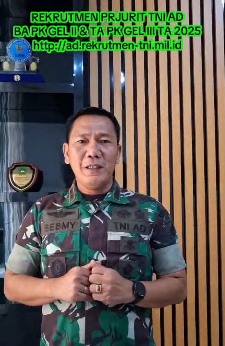 Komandan Kodim 0432 Bangka Selatan, Letkol Arh Sebmy Setiawan, mengajak generasi muda daerah untuk tidak menyia-nyiakan kesempatan emas mengikuti rekrutmen penerimaan prajurit TNI AD tahun anggaran 2025.