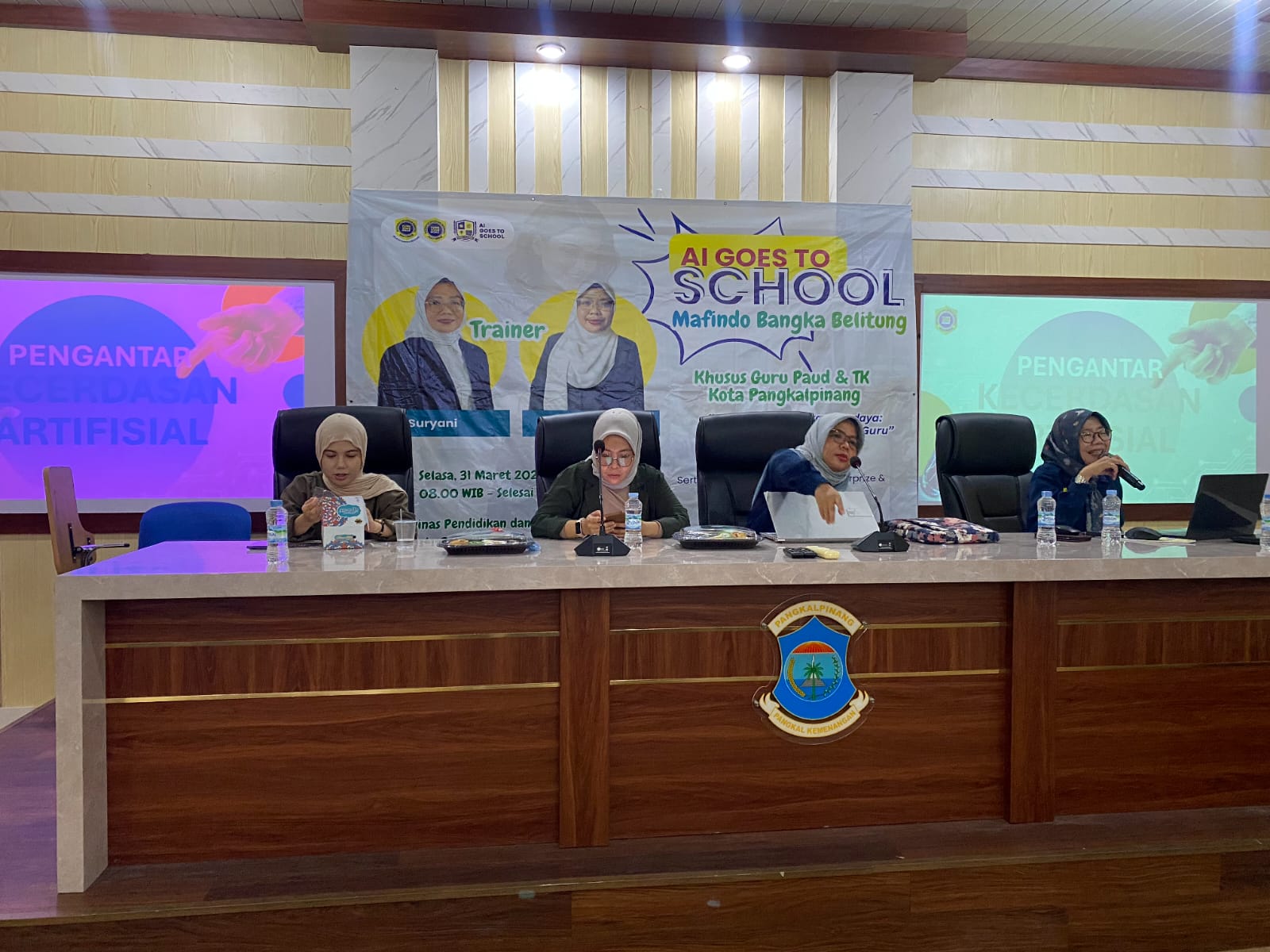 http://JURNALSIBER.COM (Pangkalpinang) , Masyarakat Anti Fitnah Indonesia wilayah Bangka Belitung (MAFINDO Babel) menggelar program AI Goes to School di Pangkalpinang. Inisiatif ini bertujuan membekali para pendidik, khususnya guru Pendidikan Anak Usia Dini (PAUD), agar mampu memanfaatkan teknologi kecerdasan buatan atau Artificial Intelligence (AI) secara bijak dan bertanggung jawab.