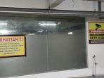 Caption : Foto spanduk bertuliskan Helm harap dibawa masuk kehilangan bukan tanggung jawab pengelola parkir dan pihak RSUD Depati Hamzah terpajang di dinding area parkiran