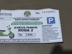 Caption : Foto karcis parkir roda 2 di RSUD Depati Hamzah