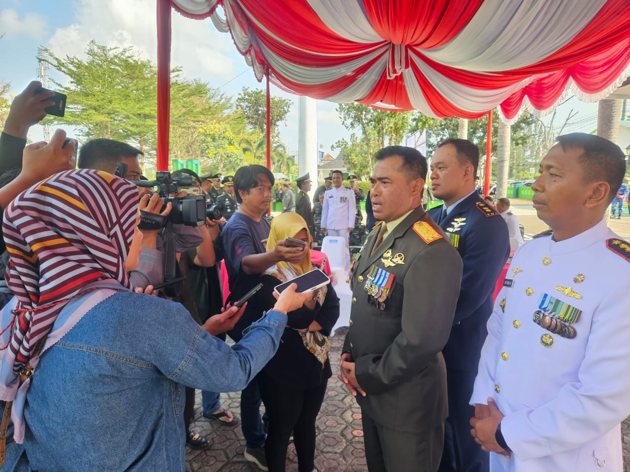 Adapun sambutan yang di sampaikan oleh Danrem 045/Garuda Jaya Brigjen TNI A. Dedy Prasetyo,S.I.P. mengatakan pada kesempatan ini, selaku komandan korem 045/Gaya, saya mengucapkan selamat datang dan terima kasih kepada para veteran dan warakawuri atas kesediaan meluangkan waktunya untuk memenuhi undangan kami