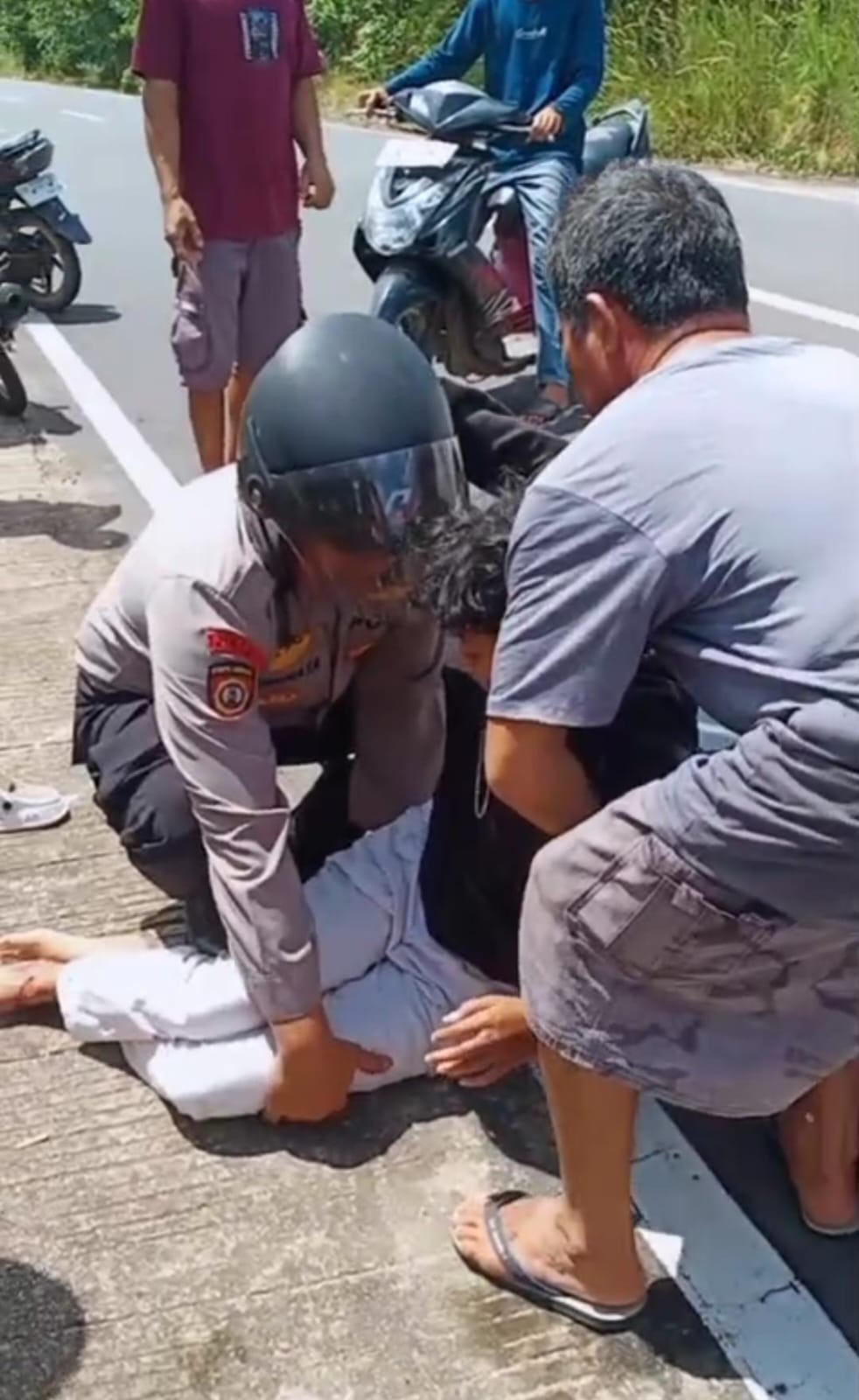 Polisi Patroli Sigap Selamatkan Korban Kecelakaan Motor di Pantai Baru Batu Rakit Bangka Barat