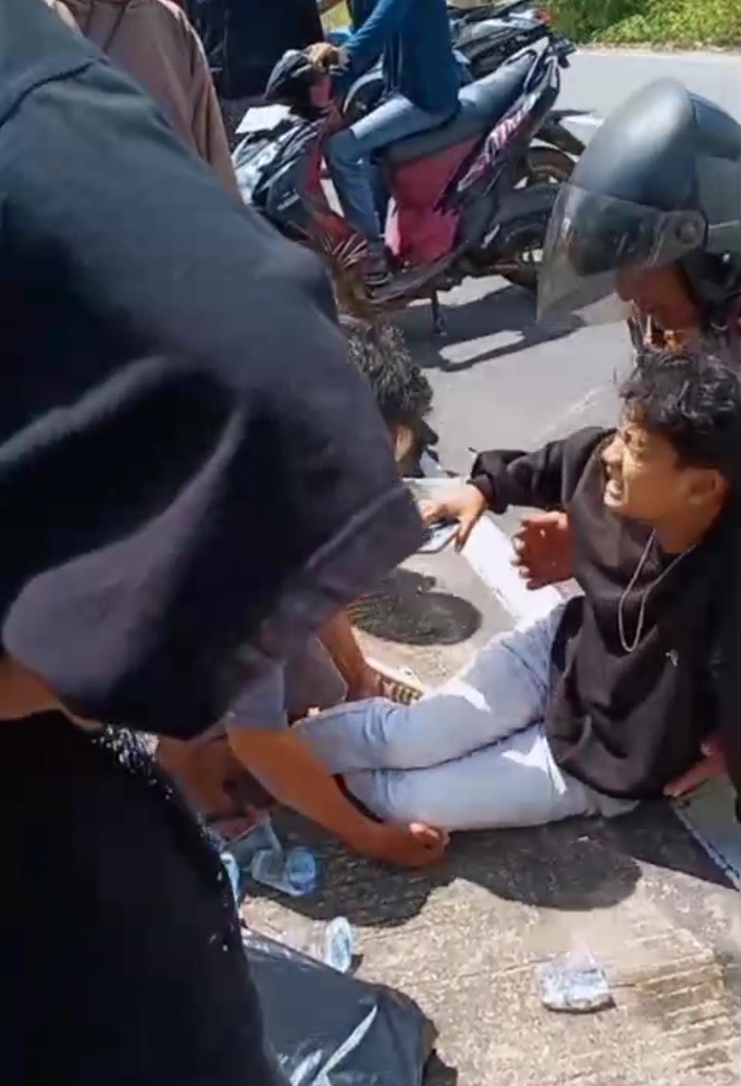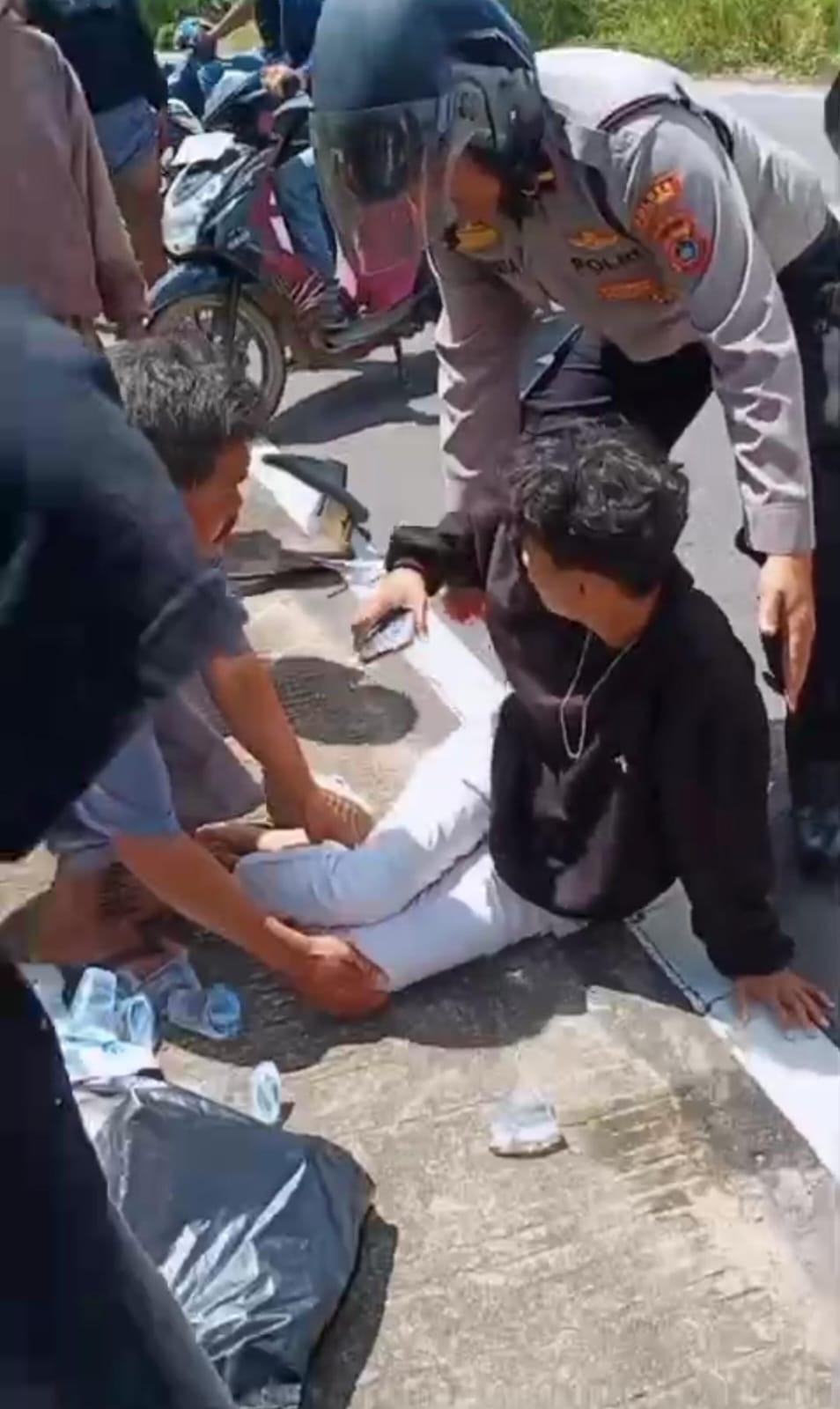 Dua sepeda motor terlibat kecelakaan lalu lintas di Jalan Pantai Baru, Batu Rakit, Kabupaten Bangka Barat, Selasa (23/12/2025). Beruntung, anggota Polres Bangka Barat yang sedang melakukan patroli langsung berada di lokasi dan sigap memberikan pertolongan kepada para korban.