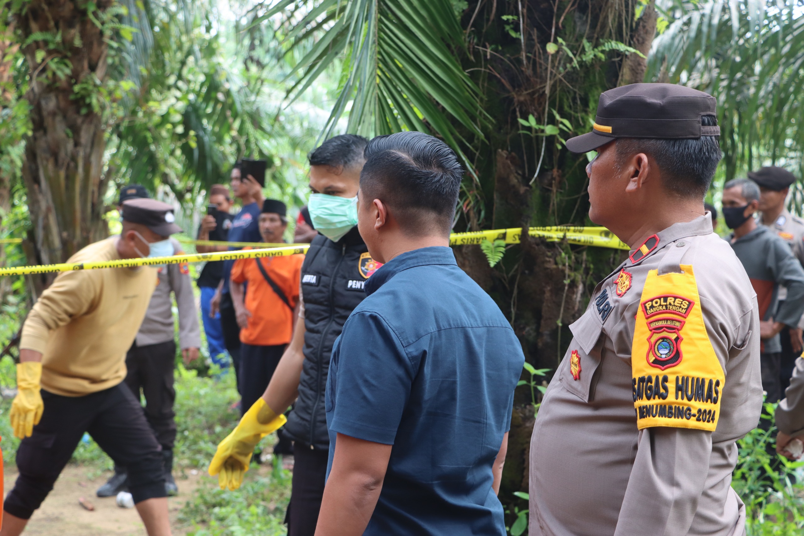 Dari keterangan yang didapat, jenazah pertama kali ditemukan oleh 2 orang warga sesama petani yang sedang memupuk di kebun sawit milik warga tersebut.