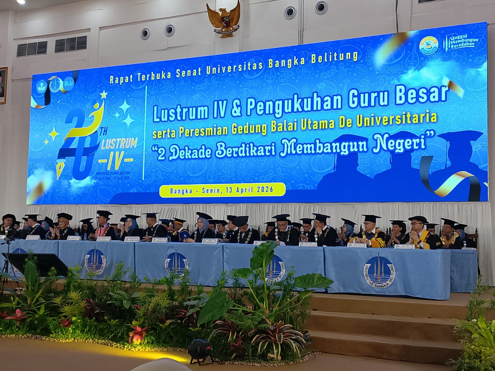“Terima kasih atas kehadiran para tamu undangan, mulai dari para guru besar, rektor, Forkopimda se-Bangka Belitung, hingga perwakilan lembaga pemerintah dan non-pemerintah yang telah memberikan dukungan terhadap kemajuan UBB,” ujarnya.